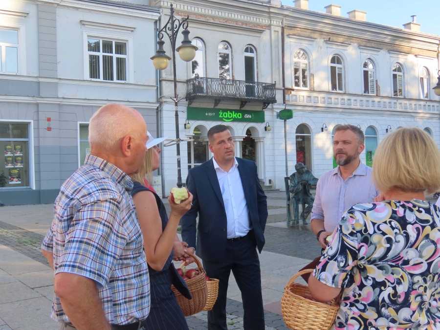 Z  tej  okazji dzisiaj  przeprowadziliśmy uliczną    akcję , mającą  na  celu  popularyzowanie  jabłek, jako najzdrowszego  owocu  świata, którego 45%  produkcji    w Polsce  pochodzi z  naszego  regionu .  Była to  dobra okazja  do  spotkań  z  mieszkańcami  i do  rozdawania  ulotek  przez  kandydatki  i  kandydatów do polskiego parlamentu.